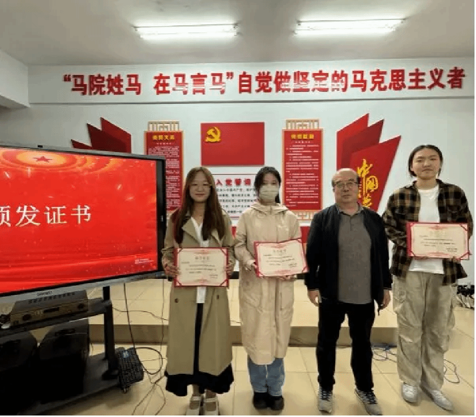 段文智老师为马克思主义学院第四届团学青学生干部颁发证书并肯定过往成绩,鼓励未来奋进,再接再厉!