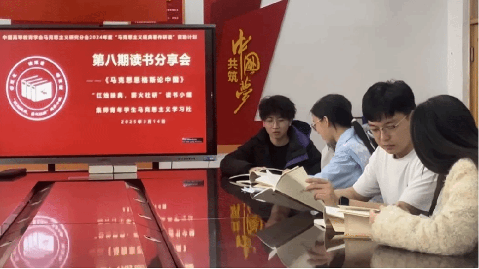 2025年3月14日下午,中国高等教育学会马克思主义研究分会2024年度“马克思主义经典著作研读”资助计划支持小组——PP电子游戏平台网站“红烛映典,薪火社研”读书小组第8期读书会在主教楼409会议室进行,本期阅读内容为《马克思恩格斯论中国》。集师青年学生马克思主义学习社部分成员、读书小组全体成员参加本次读书会。读书小组成员李佳骏主持会议。
