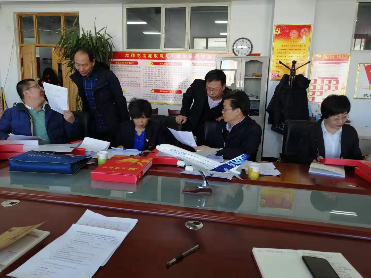 会上,现代服务学院党总支书记黄中作了工作汇报。随后朱玉东校长和第三巡回指导组全体成员对照台账和清单,认真细致地查看了各项报告和佐证材料,指导组组长刘嵘将材料检查情况及反馈意见作了详细叙述和说明。