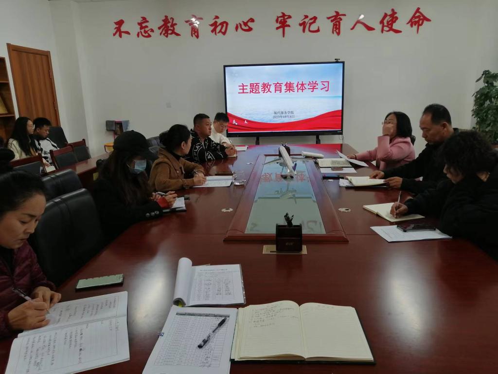 10月8日现代服务学院组织召开主题教育集体学习。会议由学院党总支书记李荣利主持,学院全体教职工参加了集体学习。