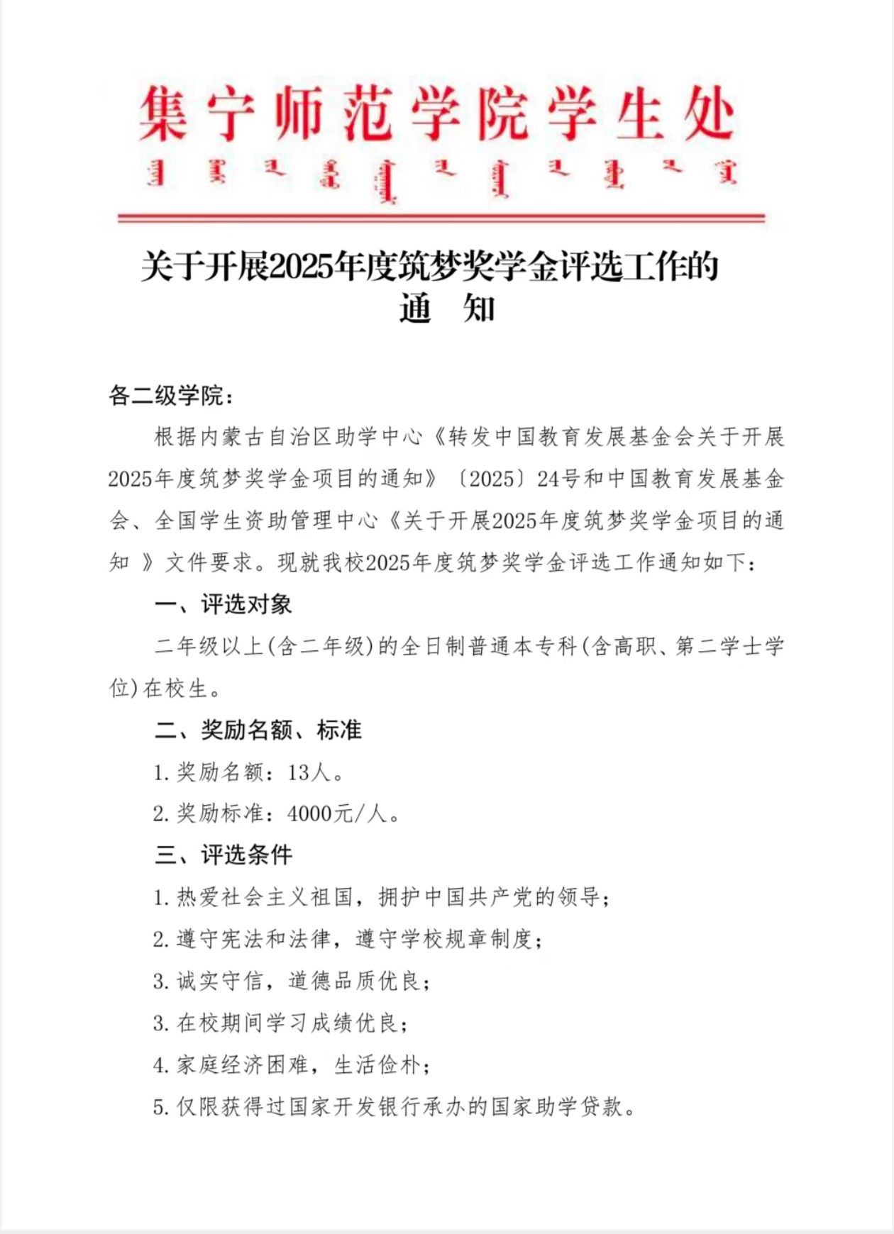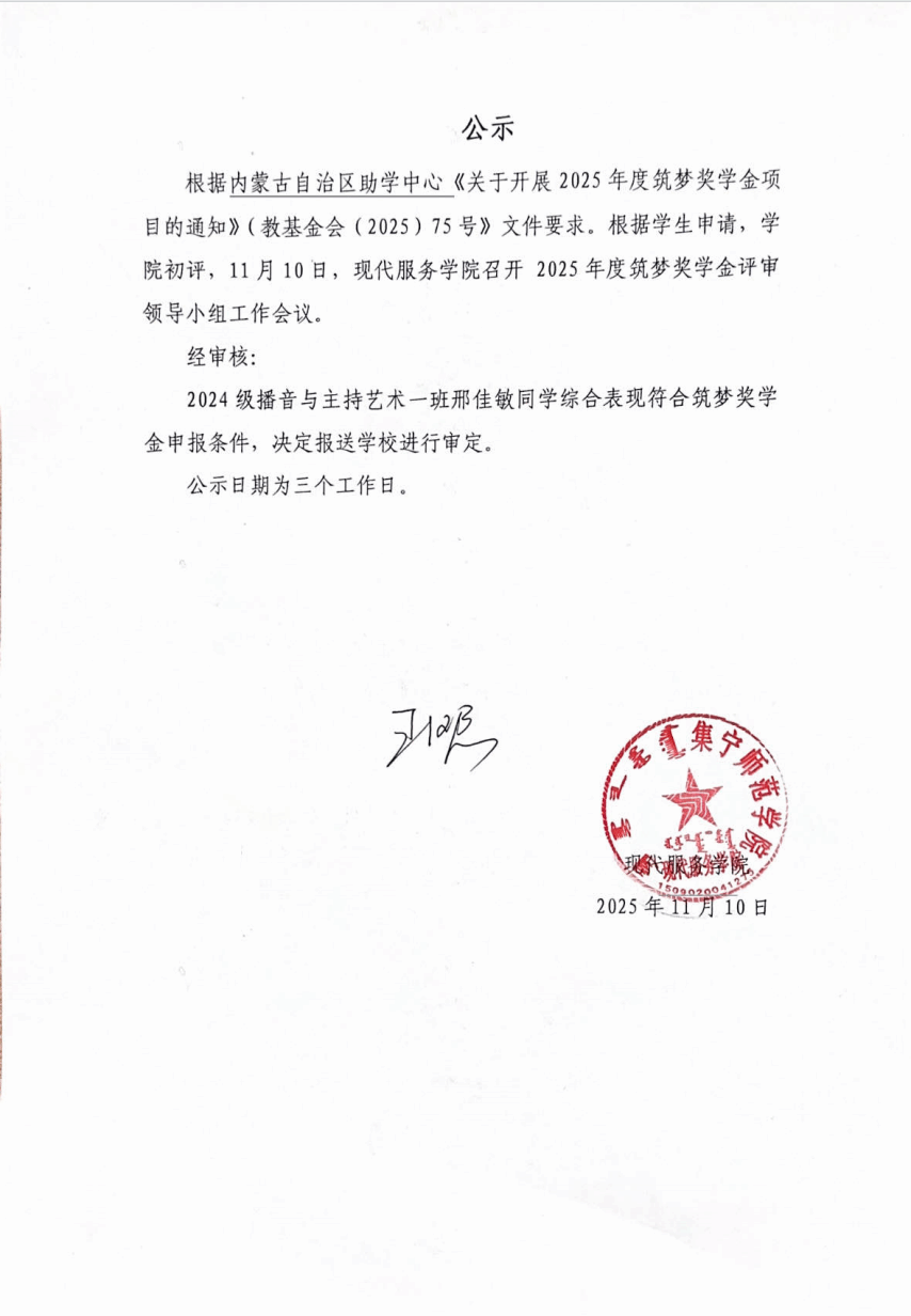 现代服务学院关于开展2025年度筑梦奖学金评选工作的通知