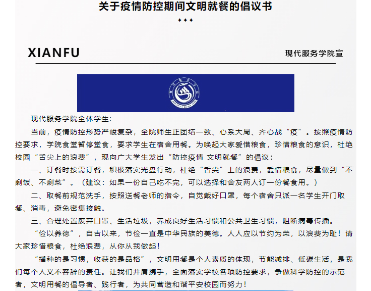 “疫情防控 文明就餐” 关于疫情防控期间文明就餐的倡议书