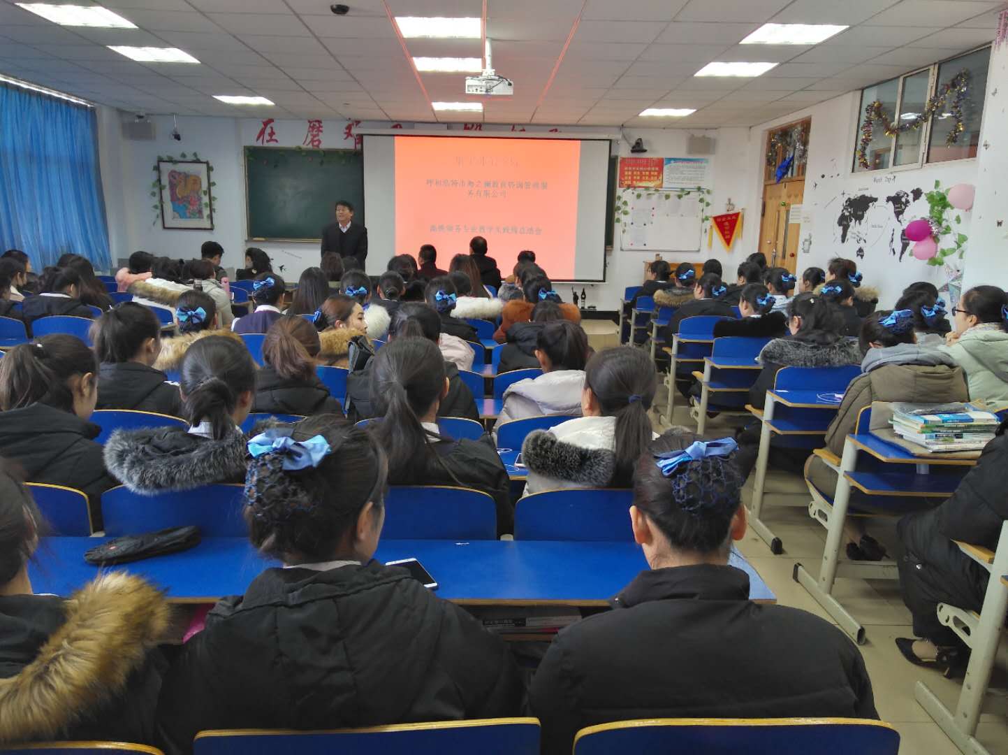 12月14日,现代服务学院高铁乘务专业教学实践周总结大会在教学楼619举行,海之澜咨询管理服务有限公司总经理袁玉升、副总经理于民宝、教学部主任王照那木拉以及现代服务学院王汉君、李贞、武俊芳等任课教师出席了总结会,2016级、2017级高铁专业的全体学生参加了会议,会议由武俊芳老师主持。