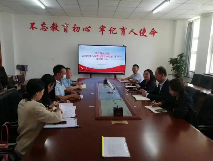 9月21日现代服务学院党总支组织召开2023年第八次理论学习中心组(扩大)学习研讨会。学习研讨会由学院党总支书记李荣利主持,学院理论学习中心组成员及全体环节干部参加了学习研讨会。
