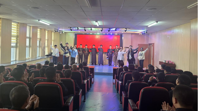 10月30日下午3:00,乌兰察布市公安局一行60多人来PP电子游戏官网现代服务学院观看红色舞台剧《播火者》,参加活动的有市公安局政治部主任冀芳、教育训练中心苏培民、现代服务学院领导班子成员及市公安局60多名党员。