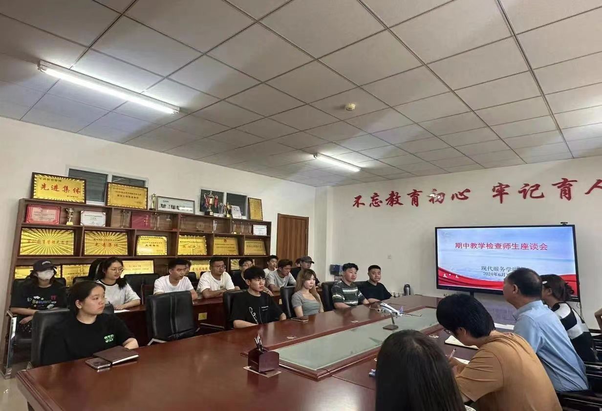 为了了解教学运行情况,保障教学质量,6月11日,现代服务学院于教学楼二楼会议室召开2023-2024学年第二学期师生教学座谈会,会议由现代服务学院院长王汉君主持,现代服务学院副院长刘春芳与各班学生代表参加了本次会议。