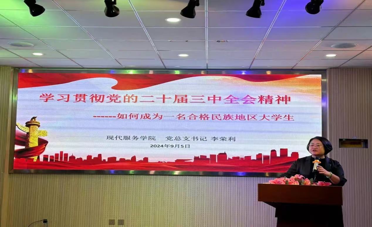9月5日,党总支书记李荣利以学习贯彻党的二十届三中全会精神---如何成为一名合格民族地区大学生为题,为全体2024级新生讲授“开学第一课”引导新生深入学习贯彻党的二十届三中全会精神,明确自己作为民族地区大学生的责任和使命。努力成为具有坚定理想信念、扎实专业知识尊重民族文化、综合素质高、社会责任感强的合格人才。