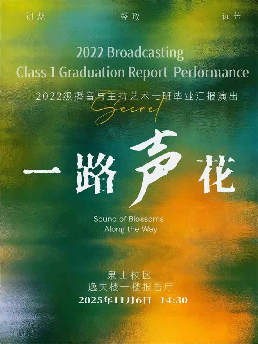 这场汇演,是学子们用扎实的专业功底交出的答卷,是用创新的艺术表达展现的才华,更是用真挚的情感完成的一次集体告白。声花绚烂,终将结为硕果。愿2026届播音班的毕业生们承载着这份声音的力量,奔赴下一场山海,在更广阔的天地间响亮发声