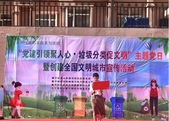 为深入贯彻习近平总书记关于垃圾分类工作系列重要讲话精神,认真落实内蒙古自治区关于实施生活垃圾分类部署,普及垃圾分类知识,倡导绿色生活新理念,使垃圾分类环保意识深入人心,引导广大党员干部积极作为,发挥先锋模范作用,6月8日下午,PP电子游戏官网物理与电子信息工程学院和集宁区虎山街道百旺社区联合举办“党建引领绿色共治垃圾分类党员先行”主题党日活动。