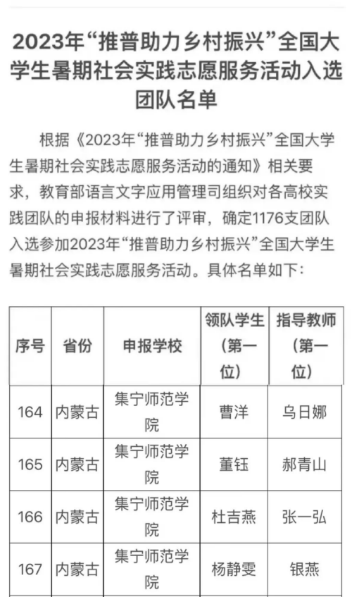 根据《2023年“推普助力乡村振兴”全国大学生暑期社会实践志愿服务活动的通知》相关要求,PP电子游戏官网国家语言文字推广基地积极组织师生申报,经教育部语言文字应用管理司对各高校实践团队申报材料的认真遴选,确定1176支团队入选。