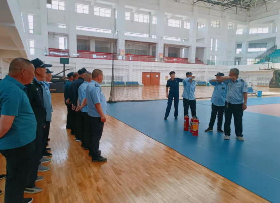校园安全管理处科长王安结合学校实际情况,向全体校安工作人员讲解了学校重点部位常见的消防安全隐患,火灾事故的分类等级。消防支队科长李超讲解了在火灾初期如何扑救以及报警、人员安全疏散、安全逃生、火场自救等,并现场演示了灭火器的正确使用方法,指导参训人员现场操作,确保所有参训人员熟练掌握消防安全技能和操作消防器材规范步骤。