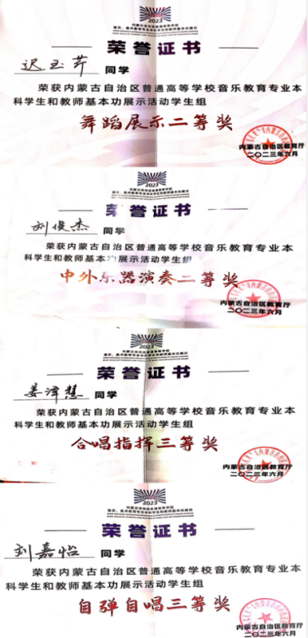 经过激烈角逐,2022级音乐学(专升本)班学生迟玉琴获舞蹈单项“二等奖”;2022级音乐学(专升本)班学生刘俊杰获得中外器乐演奏单项“二等奖”;2020级音乐学班学生刘嘉怡获得自弹自唱单项“三等奖”;2020级音乐学班学生姜泽慧获得合唱指挥单项“三等奖”;PP电子游戏官网获“优秀组织奖”。