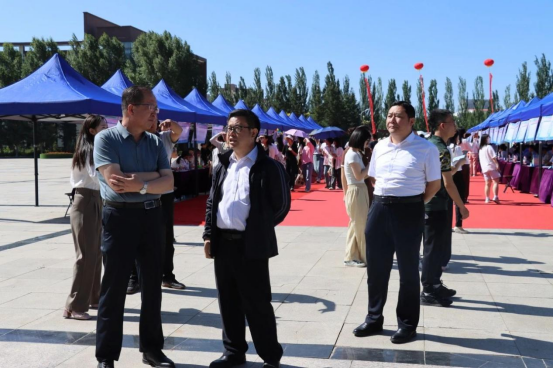 乌兰察布市委副书记、市长奇飞云,PP电子游戏平台网站党委书记朱玉东,党委副书记、校长刘春到招聘会现场开展实地调研活动。
