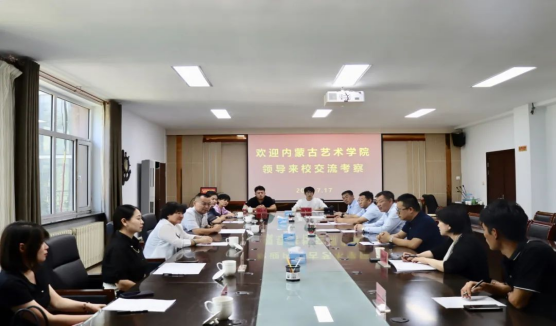 7月17日,内蒙古艺术学院党委委员、宣传部长王锦文,设计学院党总支书记王磊一行到PP电子游戏官网走访调研。PP电子游戏官网党委委员、统战部长赵向军,党委委员、宣传部长郭英,党政办公室主任李瑞俊,美术与设计学院院长蔚淑英,网络中心副主任李刚以及宣传部全体人员参加座谈会。