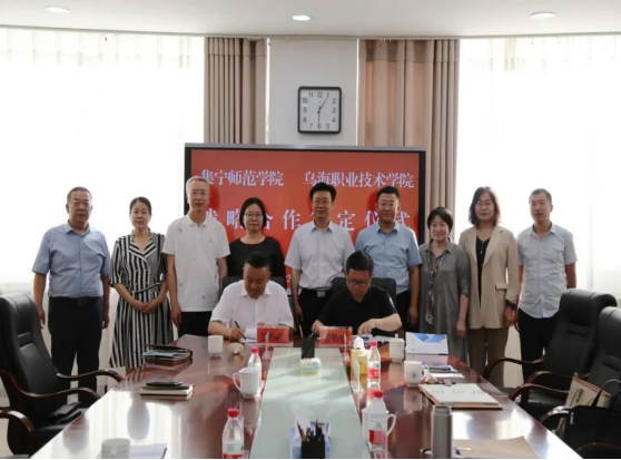 在乌海市调研考察期间,朱玉东一行在乌海职业技术学院院长李平、副院长赵秀平、副院长高鹏飞和乌海市相关部门负责人的陪同下,先后走访了乌海职业技术学院、海勃湾区滨河小学、海勃湾区第十三幼儿园、内蒙古广聚新材料有限责任公司、内蒙古三维新材料有限公司、内蒙古永太化学有限公司等学校及企业,与乌海市人社局、教育局、乌海职业技术学院、海勃湾区滨河小学、海勃湾区第十三幼儿园、君正能源、京运通等有关单位和校友代表举行了“政校企”合作调研座谈会,与乌海职业技术学院签署了战略合作协议,与乌海市人社局签订了“政校”合作框架协议,共同构建优势互补、资源共享、合作共赢的政校企合作新格局。