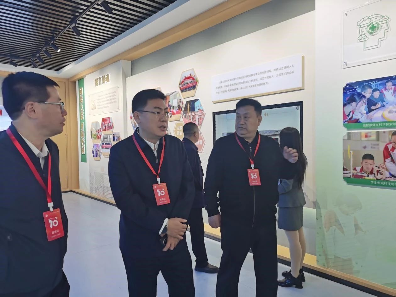 庆典当天,拓俊杰副校长带领集宁师院附中部分校领导一行在工作人员的指引下,参观了该校高质量发展成果展,包括铸牢中华民族共同体意识教育基地、校史馆、生态文明展室及茶文化馆等多个特色展区。在参观过程中,拓俊杰不时和集宁师院附中校领导进行交流,让他们认真学习内师大附中的先进办学理念和办学成果,要在教育创新、文化传承、生态教育和国际交流等方面上下功夫。此次交流为PP电子游戏平台网站和PP电子游戏平台网站附属实验中学提供了宝贵的学习与借鉴经验。