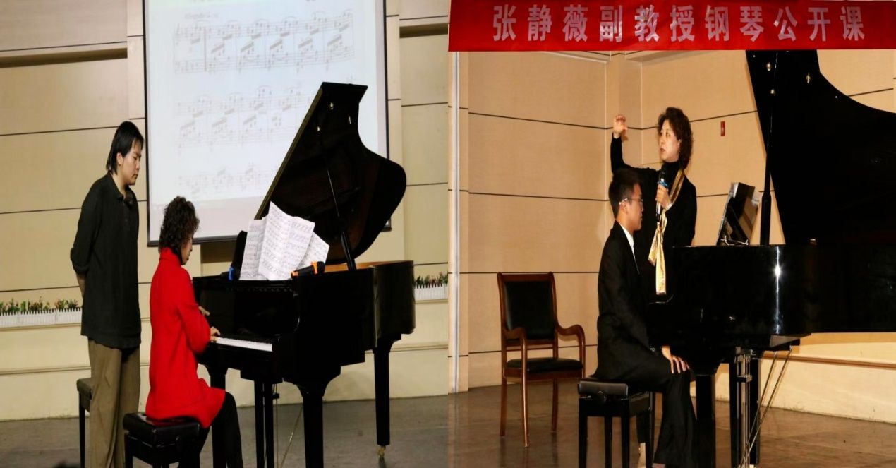 内蒙古师范大学副教授张静薇通过对《暴风雨》《拉赫玛尼诺夫升C小调前奏曲》《告别第》三乐章、《皮黄》等钢琴作品的演奏进行辅导与示范,强调了钢琴专业基本功训练,演奏的准确读谱,演奏呼吸、乐句的表现等方面知识的重要性,拓宽了学生的演奏视野。