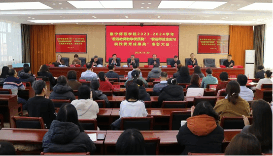 会上,曹宇宣读了2023—2024学年“君远教师教学优质奖”和“君远师范生实习实践优秀成果奖”获奖人员名单,校领导、有关行政管理部门负责人、基金会理事长、秘书长为获奖师生颁发荣誉证书。