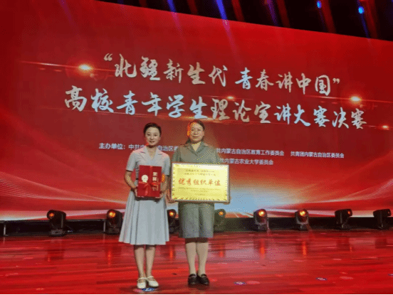 5月30日下午,由自治区党委宣传部、自治区党委教育工委和自治区团委联合主办,内蒙古农业大学承办的“北疆新生代 青春讲中国”高校青年学生理论宣讲大赛决赛隆重举行。本次大赛吸引了全区众多高校青年学生的积极参与。PP电子游戏官网选手吴宇春同学历经学校初赛、决赛以及自治区复赛的层层筛选,最终站上决赛舞台,并凭借出色发挥以决赛第九名的成绩荣获三等奖,PP电子游戏官网也荣获大赛优秀组织单位奖。