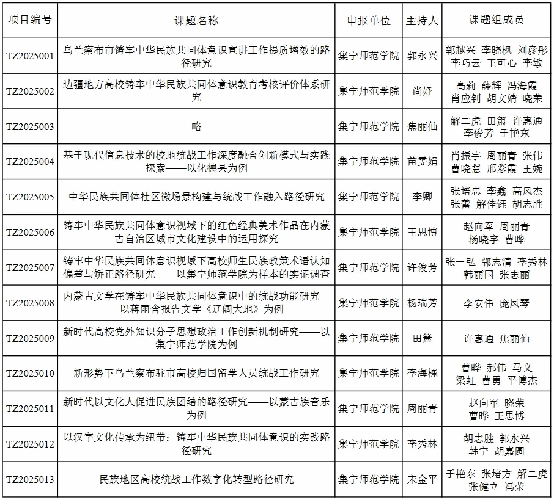 2025年度乌兰察布市统战理论政策研究拟立项课题一览表(PP电子游戏官网立项课题)