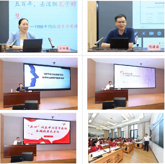 实践活动期间,曲阜师范大学的王曰美教授、倪建成教授、姜美颖处长、朱献贞教授、孔轶众老师分别以“弘扬中华师道精神,做新时代四有好老师”“AI与教育的相遇:必要性、实践案例与伦理边界”“习近平教育观视域下的教师专业发展与教育实践”“与大师相遇——现代文学大家的师德风范”“‘五四’以来中国青年运动正确的历史方向”为题作了专题讲座。在书法学院书记刘建新的指导下,同学们还体验了软笔书法。活动期间开展了3次实地研学和1场演讲比赛。