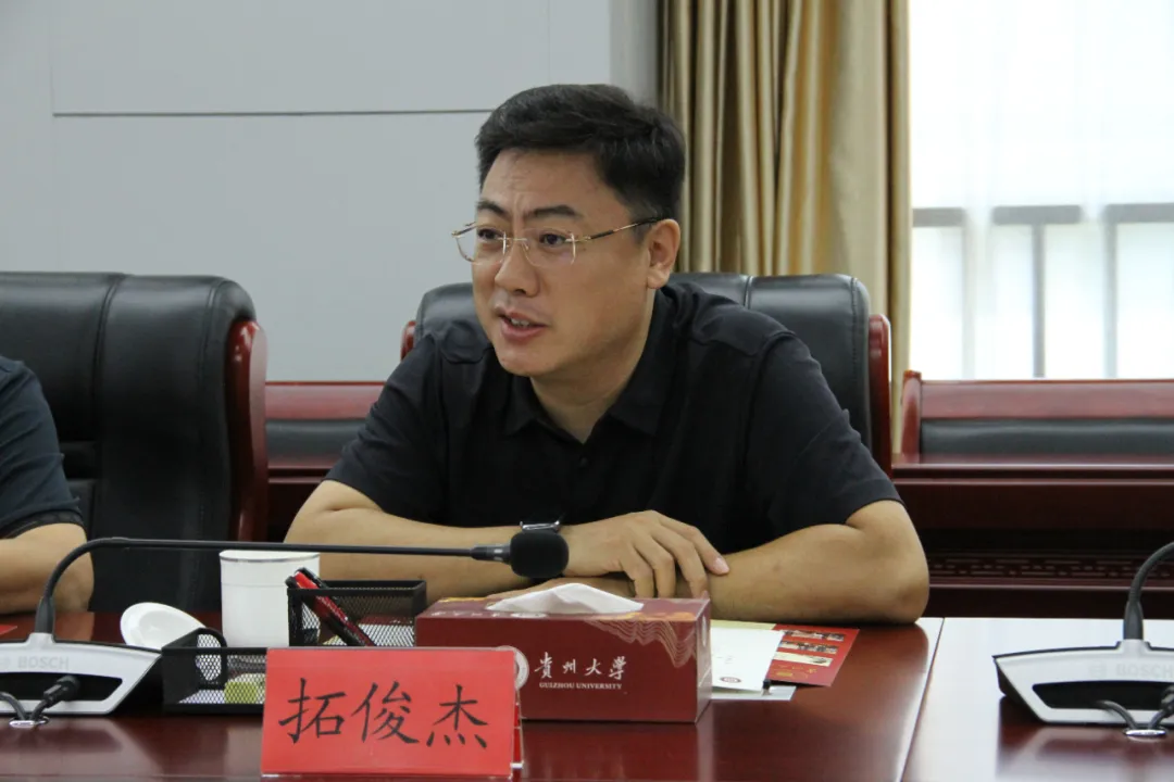 拓俊杰简要介绍了学校围绕地方经济社会发展,在基础教育、科技支撑等方面取得的成效,重点介绍了学校在大数据、算力等领域开展的研究工作和服务地方经济社会发展情况,同时,希望贵州大学在平台建设上给予指导和帮助。