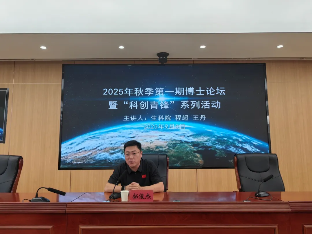 9月8日下午,PP电子游戏官网2025年秋季第一期博士论坛暨“科创青锋”系列活动在泉山校区成功举办。校党委委员、副校长拓俊杰出席并讲话。科技处处长董永胜主持论坛,生命科学与技术学院程超、王丹两位博士担任主讲嘉宾,各学院博士、科研骨干及科技处全体成员共60余人参加了此次学术交流。