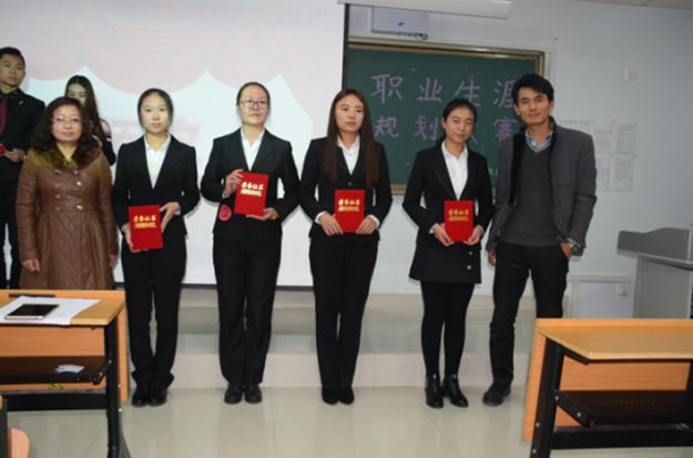 比赛分个人职业生涯设计作品、现场发挥和现场问答三个环节,以自我分析、职业分析以及短、中、长期的目标设定和实施四个方面为构架展示其职业生涯的规划。评委根据选手展示的PPT内容以及选手的讲解从目标实现、职业描述、职业发展前景、通过实际的案例操作进行提问。