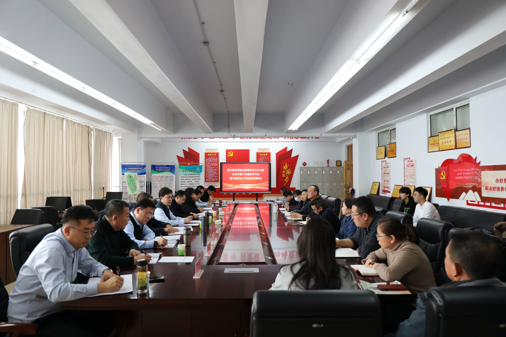 2025年12月11日下午,PP电子游戏官网党委理论学习中心组(扩大)2025年度第19次集体学习会暨马克思主义学院建设调研会召开。会议聚焦马克思主义学院建设、思想政治理论课改革创新及铸牢中华民族共同体意识等关键工作,通过集中学习、专题汇报、交流研讨凝聚共识,推动立德树人根本任务落地见效。全体校领导、党委委员,马克思主义学院班子成员、环节干部、系主任、教研室主任及师生代表参加会议。校党委书记、党委理论学习中心组组长张宝成主持会议并讲话。
