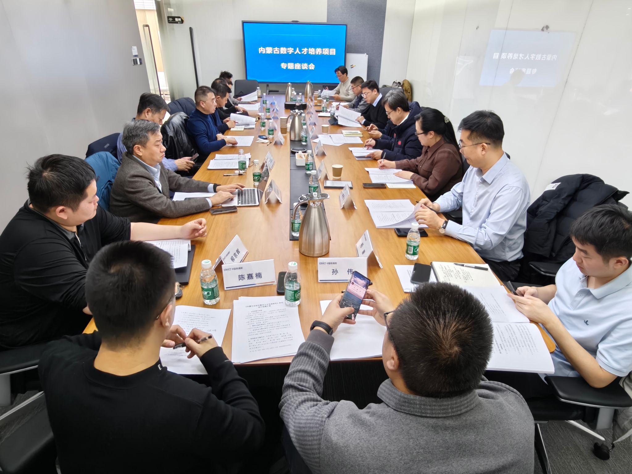 29日上午,内蒙古数字人才培养项目专题座谈会在中国信通院福州会议室召开。会议由自治区大数据中心党委委员、数字化促进处处长赵国宸主持。张宝成出席会议,与来自科研院所、高校和头部企业的特邀专家及项目组成员参加座谈。会议特邀中国信通院工物所研究员马晨光、中国信通院北京泰尔英福科技有限公司解决方案专家柳京晖、中国地质大学(北京)人工智能学院副教授刁明光、清华大学计算社会科学与国家治理实验室正高级工程师李军、北京邮电大学教授张成文、腾讯教育基础教育及高等教育商务拓展总监羊建良、科大讯飞总部市场总监工程师王彬彬、普天信息工程设计服务有限公司工业互联网业务总监陈昕等专家到会指导。