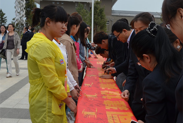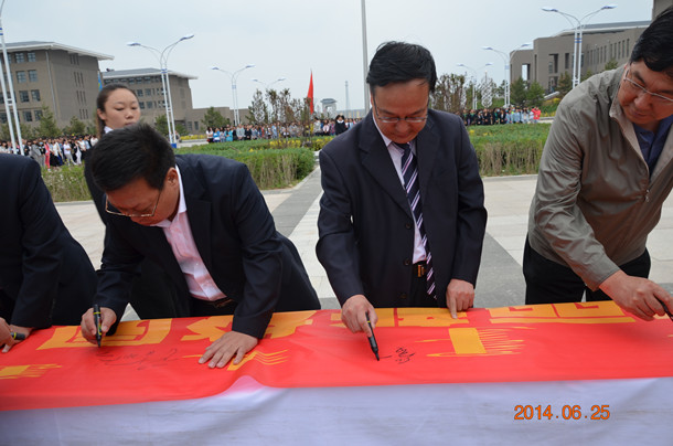 最后,全体在场领导、老师和同学们进行了“共筑美丽新校园活动”签名仪式。