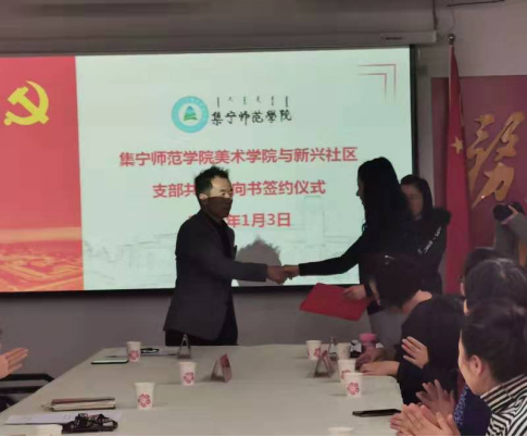 在主题活动中,美术学院与前进路办事处新兴社区举行《共建意向书》签约仪式。