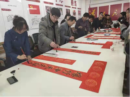为深入学习贯彻习近平新时代中国特色社会主义思想,全面贯彻落实党中央决策部署,执行校党委有关党建工作的安排要求,值此新春佳节来临之际,以体现党员群众心相连,弘扬中国传统文化为目标,美术学院教工党支部联合学工党支部与前进路办事处新兴社区党支部举办“不忘初心、牢记使命——美术学院与新兴社区支部共建 迎新年 送春联 温暖过节”主题党日活动。