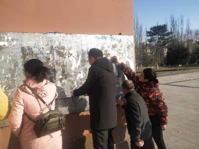 为美化校园,创造整洁环境,迎接全市的“创城”活动,11月21日下午,在化学与化工学院党总支书记李荣的带领下,化学与化工学院学院全体师生党员身体力行,积极发挥党员模范带头作用,在逸夫楼、主教学楼前、锅炉房周围等进行了治理“校园牛皮癣”劳动。校党委委员、副校长许卫,学校第二巡回指导组成员参加了本次活动。