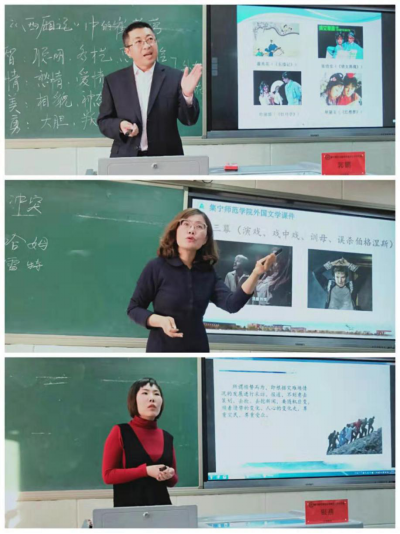 文学院郭鹏、郭志清、银燕三位老师分别以《“临去秋波那一转”——王实甫< 西厢记>中的崔莺莺》、《哈姆雷特形象分析》以及《灾难性新闻报道》为题,为大家展示了古代文学、外国文学、新闻学三种不同类型、不同风格课程各具特色的风采魅力和教师们扎实深厚的教学功底,赢得了满堂喝彩。评委李秀林、孙振涛、刘彦华、侯书锁、庞凤琴老师对三位教师的教学展示从教学设计、教学内容、教学手段、教学效果等多个方面进行了精彩的点评。