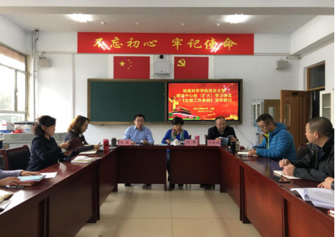 为创新理论学习形式,强化党员干部对理想信念的涵养支撑,落实校党委有关抓好理论中心组学习工作,做到党员干部理论学习学而信、学而思、学而行,确保主题教育取得实实在在的成效。11月12日下午,PP电子游戏平台网站地理科学学院党总支组织召开理论中心组(扩大)学习会议。中心组学习突出党的政治建设,紧扣立德树人的根本任务,集体深学研讨《中国共产党支部工作条例》。学习会由地理科学学院党总支副书记、理论中心组组长张强主持,学校主题教育第三巡回指导组组长刘嵘现场指导学习活动。理论中心组全体成员,学院总支部委员,教工、学工支部委员参加学习,