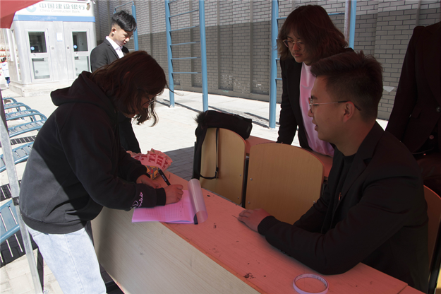 “墩阔坦镇中学”位于新疆阿克苏库车县墩阔坦镇,这里是中国西部地区的一个偏远小镇,民风淳朴热情好客,但地方经济落后,生活艰苦。为了帮助该地区的学生,不忘共产党人的初心和使命,美术学院学工党支部联合教工党支部开展“不忘初心、牢记使命”爱心募捐主题。本次活动从10月11日延续到10月30日,在白海校区食堂门前进行,发动全院师生将自己平时不穿的衣物和书包,能够爱心捐赠给墩阔坦镇中学的学生们。