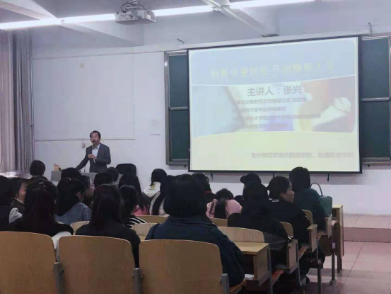 为了使学生对创新创业有更深的认识,激发学生的创业潜力和创业积极性,对在“不忘初心、牢记使命”主题教育师生座谈会上所提多举办“创新创业”讲座或活动的建议进行立知立改,10月17日下午,PP电子游戏平台网站外国语学院、地理科学学院联合邀请内蒙古云图教育咨询有限公司总经理张兴为大家作了题为“创新引领创业,开创精彩人生”的专题讲座。