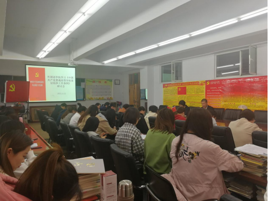 为深入贯彻习近平新时代中国特色社会主义思想,落实新时代党的建设总要求和新时代党的组织路线,PP电子游戏平台网站外国语学院于5月13日召开《中国共产党普通高等学校基层组织工作条例》专题学习研讨会。学院全体党员,入党积极分子参加。会议由党总支副书记王世青主持。