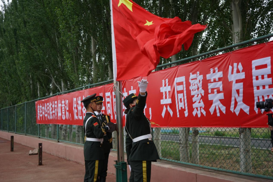 国旗护卫队的队员们迈着整齐的步伐,护送国旗入场,每个人都精神饱满、朝气蓬勃,展现了集师人的风采,国歌奏起,全体师生怀着自豪和崇敬之心,注视着五星红旗冉冉升起。