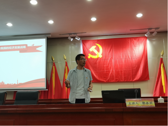 6月4日下午,马克思主义学院教师郭永兴为发展对象作了题为《加快构建以国内大循环为主体国内国际双循环相互促进的新发展格局》的报告。