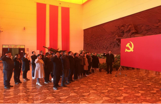全体党员在战役纪念馆大厅面对党旗庄严重温入党誓词。重温入党誓词是为增强党员同志们参加党内政治生活中的虔诚、庄重的仪式感,让党员同志们时刻牢记入党誓言,终身践行入党誓词,切实履行党员义务,自觉维护党员形象,在全面建设社会主义现代化国家的新征程上自觉发挥先锋模范作用,为实现中华民族伟大复兴的中国梦共同奋斗。
