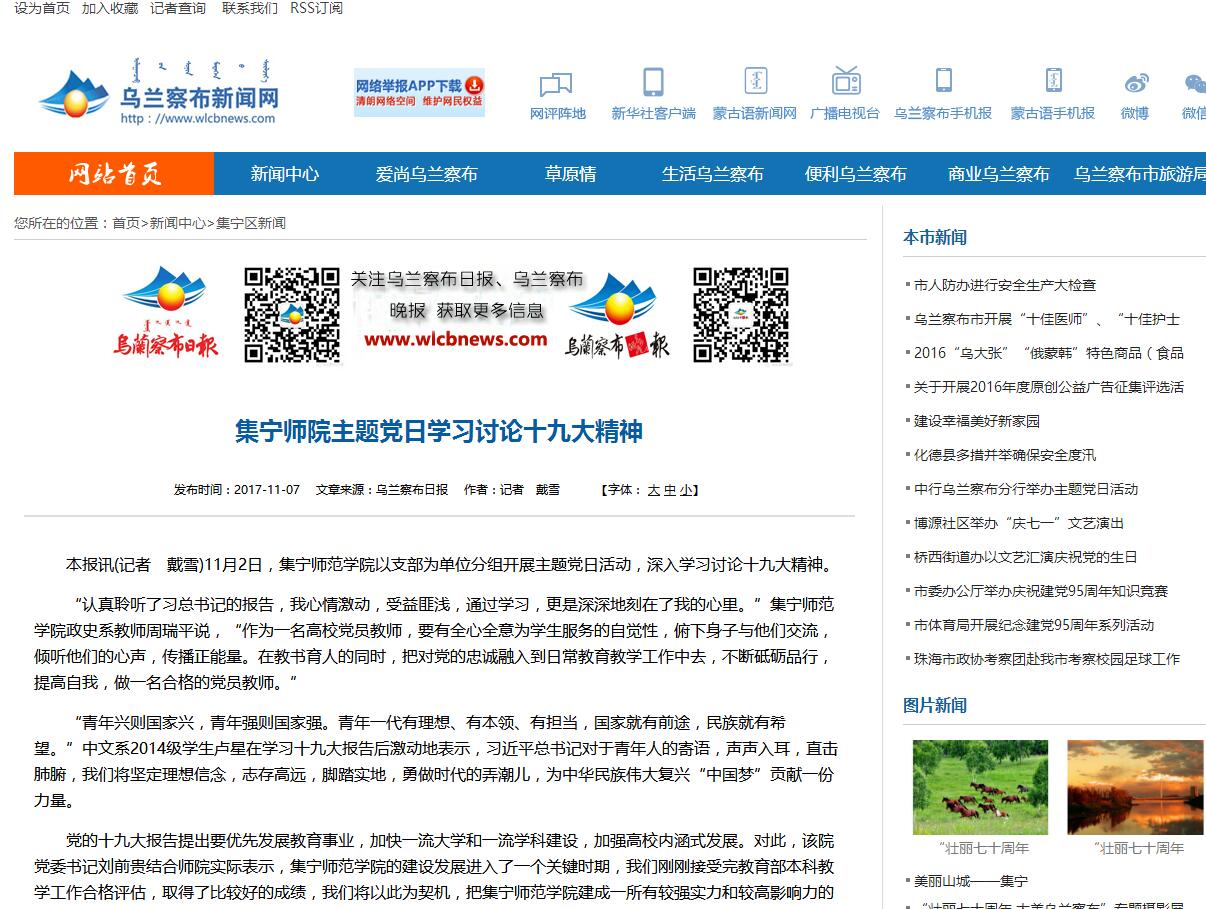 集宁师院主题党日学习讨论十九大精神