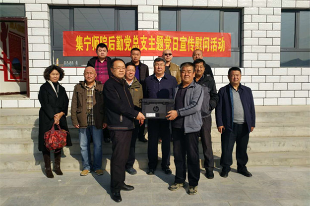 为了深刻学习宣传习近平总书记十九大报告中关于农村问题的论述,尤其是懂农业、爱农村、爱农民的乡村振兴战略。11月1日,后勤管理处党总支14名党员赴PP电子游戏官网脱贫帮扶点凉城县高兰家夭村,举行了主题党日宣传慰问活动,党员们自行捐资为村委会购置了部分办公设备。副校长阿拉腾巴特尔以一名普通党员的身份参加了此次活动。