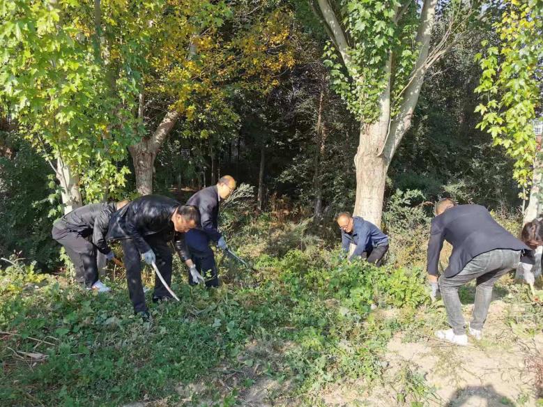 最后,全体党员手拿镰刀进行“防隐患、保安全”除草活动。全体党员认真清理了校园东北角的杂草,美化了校区环境,防止火灾发生,以消除隐患,保证安全。
