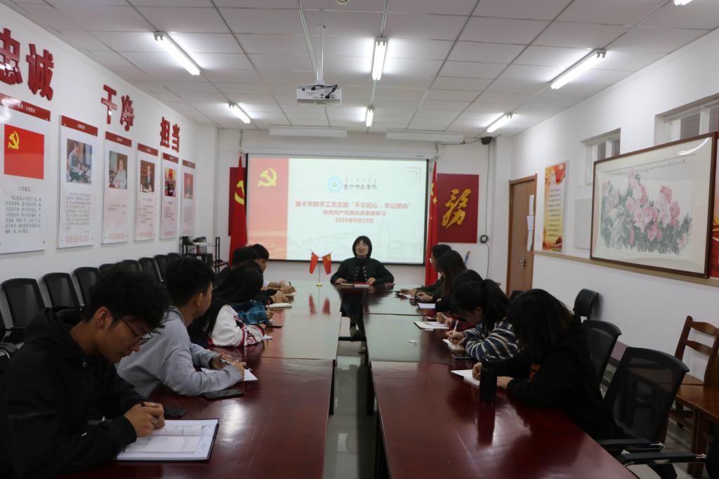 为深入学习贯彻落实习近平总书记在“不忘初心、牢记使命”主题教育工作会议上的重要讲话精神,9月25日,PP电子游戏平台网站美术学院学工党支部召开“不忘初心、牢记使命”优秀共产党员先进事迹学习会议。会议由学工支部书记陈丹主持。