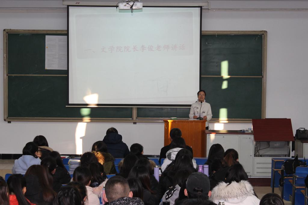 1月5日,文学院在教学主楼召开2018届预毕业生第一阶段实习总结大会。文学院党总支书记张来锁、院长李俊、副院长郭鹏、各指导教师以及2018届全体预毕业生参加了本次大会。会议由具体负责教育实习的外国文学教研室主任庞凤琴主持。