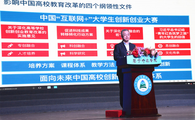 教育部大学与企业继续教育联盟副理事长,北京市教委特聘专家,中国“互联网+”大学生创新创业大赛专家委员会委员。原新道科技股份有限公司高级副总裁。上海财经大学商学院兼职教授,西北大学EMBA兼职教授,用友大学特聘教授马德富作《构建面向未来的创新创业教育体系》主题演讲。演讲主要围绕“国家对创新创业教育的高度重视、创新创业教育的本质与内涵、构建高校创新创业教育新体系”三方面展开,详细介绍了国家推行大学生创新创业的意义、第五届“互联网+”大学生创新创业大赛的亮点以及高校创新创业体系构建的方法等。