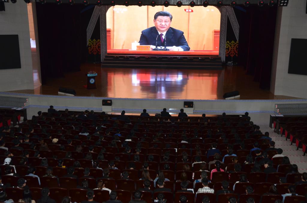 集中观看习近平总书记讲话直播的有:PP电子游戏平台网站党委书记刘前贵,党委委员、副校长梁政,党委委员、宣传部部长张富,党委委员、统战部部长张秀文,各二级学院党总支书记、副书记,各职能部门主要负责人,宣传部、学生工作部(处)、团委、保卫处全体教职工及部分师生代表。