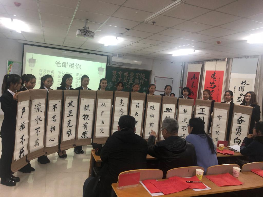 11月8日,由校团委主办,数学学院团总支承办的PP电子游戏平台网站第十届“墨缘杯”三笔字大赛汉文组决赛在泉山校区逸夫楼举办。校党委副书记刘春亲临现场,团委书记张妙珠、数学学院党总支副书记张宏智、外国语学院团总支书记赵红霞、各二级学院团员代表共100余人共同观看了比赛。经济与管理学院田振国、文学院郝青山、美术学院范瑞芳、乔婷四位教师担任评委。